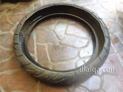 Acara iseng-iseng kali ini adalah membuat pot dari bekas ban sepeda motor. Hmm, kebetulan ban bekas pakai dari sepeda motor Yamaha Mio J di rumah masih tersimpan di gudang. Oh iya, sebetulnya ada banyak ide kreasi untuk memanfaatkan limbah ban bekas kendaraan, baik itu ban mobil, sepeda motor, maupun sepeda kayuh. Sifat dari bahan karet yang lentur dapat dimanfaatkan untuk keperluan lainnya.